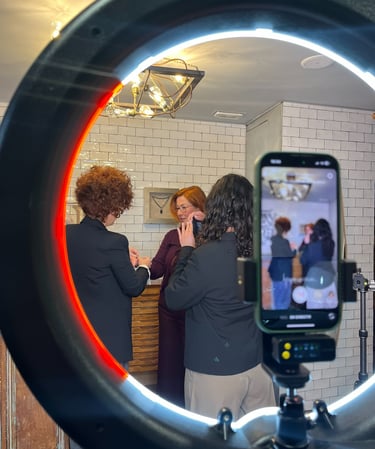 Nuestro equipo se desplaza al lugar del evento para capturar tanto los momentos planeados como esos instantes espontáneos que hacen única cada experiencia. Nos adaptamos al entorno y a la dinámica del evento para no interrumpir en su desarrollo.